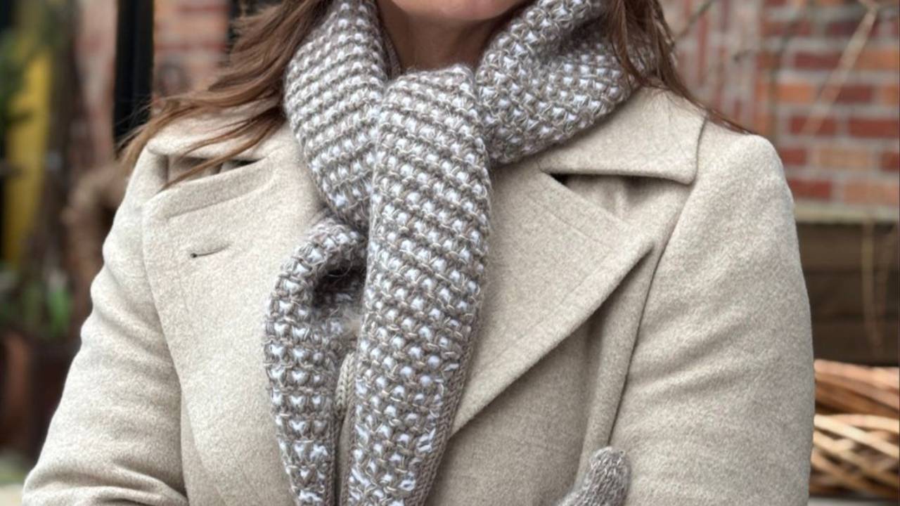 Vi elsker både vevstrikk og skjerf - og hva er vel da bedre enn en lekker kombinasjon? Dette er det trendy skjerfet som hever antrekket samtidig som det varmer godt i halsen. Lilly-Lou Skjerf strikkes frem og tilbake i tofarget vevstrikk, og rammes inn med en i-cord til slutt.
